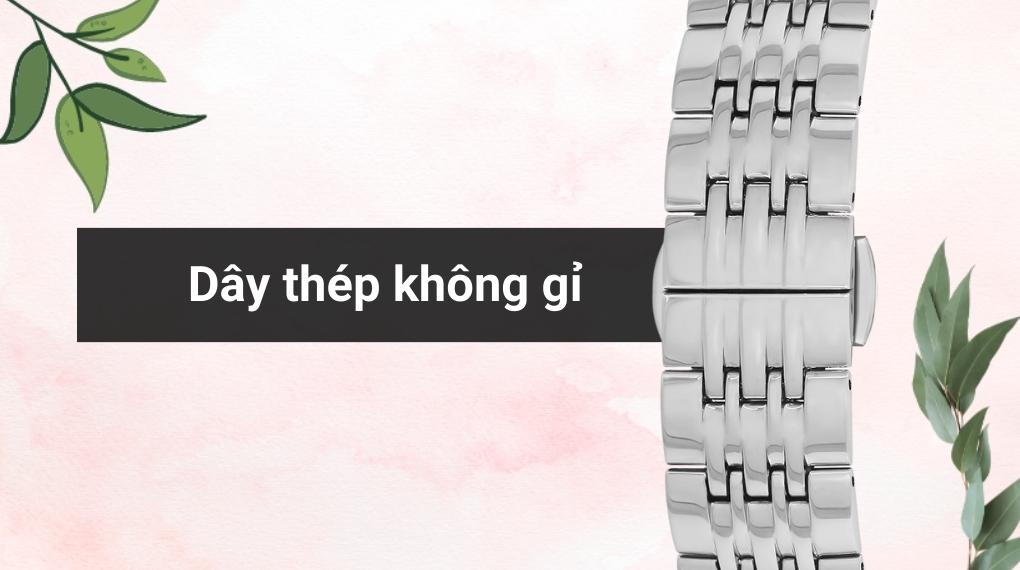 • Khung viền và dây đeo của đồng hồ này đều được làm từ thép không gỉ, không chỉ bền bỉ và bóng bẩy mà còn hạn chế va đập và hạn chế ăn mòn ổn, giúp cho sản phẩm có thể đồng hành lâu dài cùng người dùng mà vẫn giữ được sự đẹp đẽ trước tác động của thời gian.