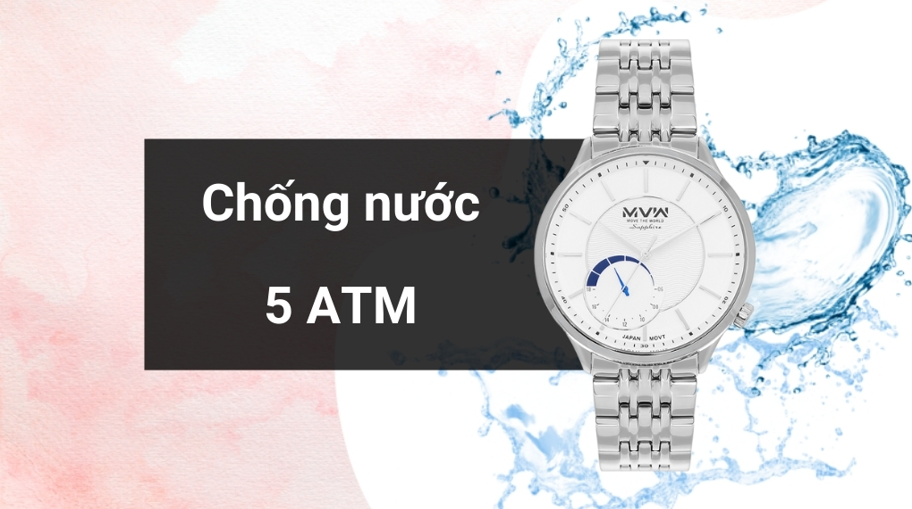 • Về hệ số chống nước, hãng đã trang bị cho đồng hồ nam khả năng kháng nước 5 ATM có thể chịu được nước từ các hoạt động sinh hoạt hàng ngày như rửa tay, tắm hoặc đi mưa. Lưu ý: không nên mang theo đồng hồ khi bơi hoặc lặn
