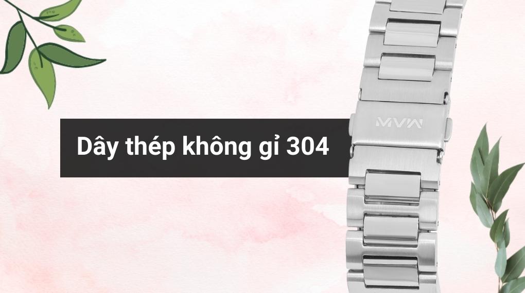 • Xem xét về khả năng bị va đập dẫn đến hỏng hóc nên hãng đã trang bị cho chiếc đồng hồ MVW này 1 bộ “giáp” từ khung viền cho đến dây đồng hồ đều làm từ chất liệu thép không gỉ 304 chịu lực và hạn chế ăn mòn tốt. Ngoài ra, sự bóng bẩy của loại vật liệu này đã trở thành mảnh ghép cuối cùng cho sự hoàn mỹ của sản phẩm.