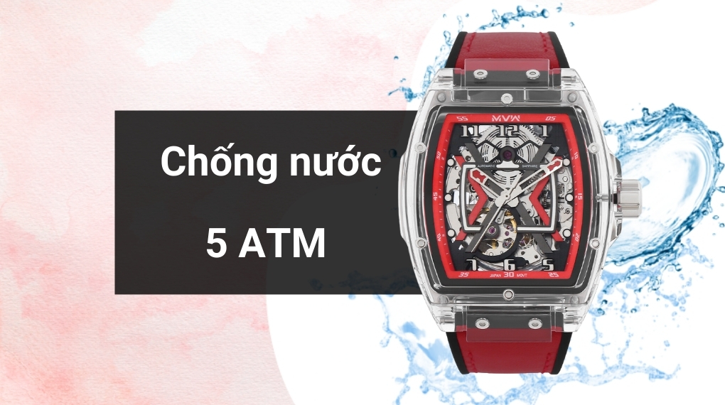 • Ngoài ra, đồng hồ còn có khả năng chống nước ở độ sâu 5 ATM, giúp người dùng an tâm sử dụng trong các hoạt động thường ngày như đi mưa, rửa tay hay đi tắm. Tuy nhiên, không nên đeo khi bơi hoặc lặn.
