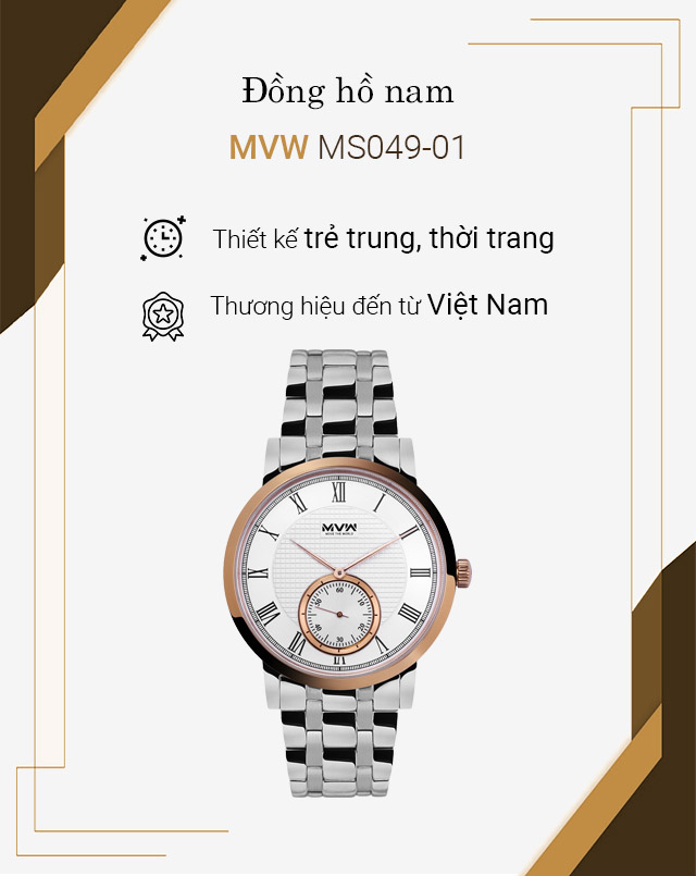Tổng quan về đồng hồ nam MWW MS049-01 Đồng hồ nam MWW MS049-01 có mặt kính khoáng trong suốtĐồng hồ nam MWW MS049-01 có khung viền thép không gỉ cứng cápĐồng hồ nam MWW MS049-01 có dây đeo chắc chắnĐồng hồ nam MWW MS049-01 có hệ số chống nước 5 ATM