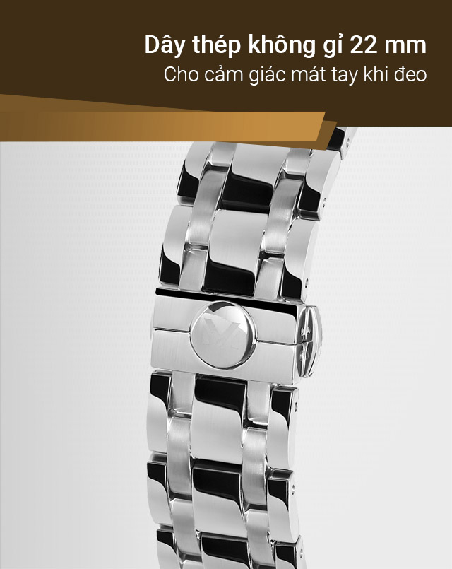 - Đồng hồ được trang bị khung viền và dây đeo được làm từ chất liệu thép không gỉ sang trọng, lịch lãm