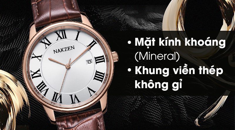- Khung viền chiếc đồng hồ Nakzen nam này bền chắc, chịu lực tốt, chống ăn mòn, chống oxi hóa hiệu quả.