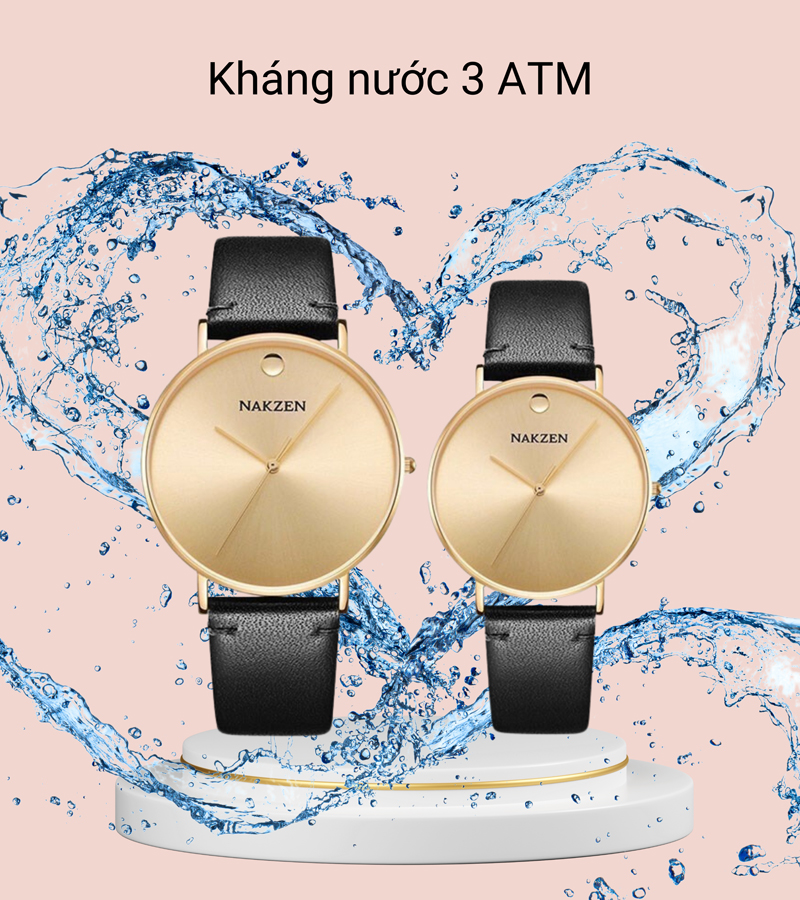 • Ngoài ra, mẫu đồng hồ Nakzen này còn có độ kháng nước 3 ATM để có thể đồng hành cũng bạn trong các hoạt động như rửa tay hay đi mưa nhỏ. Lưu ý: không sử dụng khi đi tắm, đi bơi.
