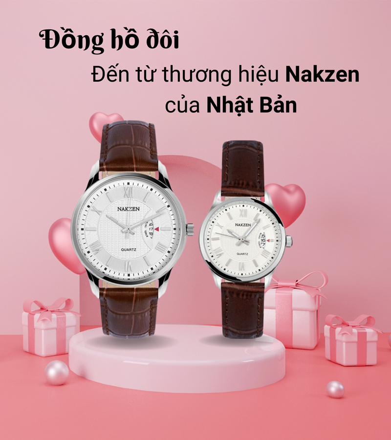 • Nakzen - thương hiệu đến từ Nhật Bản nổi tiếng với các sản phẩm đồng hồ thanh lịch và sang trọng đã gây được ấn tượng với người Việt và thế giới nhờ sự đa dạng phong cách, phù hợp với nhiều người tiêu dùng và đặc biệt là các cặp đôi.