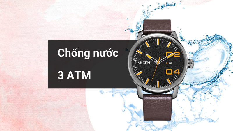 • Người dùng có thể yên tâm đi dưới mưa và rửa tay mà không lo bị hư hỏng vì hệ số chống nước của mẫu đồng hồ nam này là 3 ATM. Lưu ý: không nên đeo khi đi tắm, đi bơi, lặn.