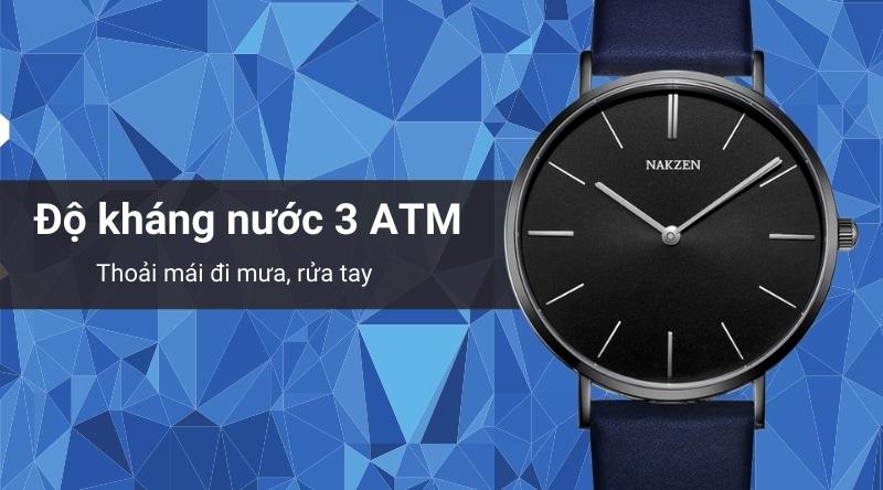 - Yên tâm đeo đồng hồ nam này đi mưa, rửa tay vì hệ số chống nước là 3 ATM, không nên sử dụng khi đi tắm, đi bơi, lặn.