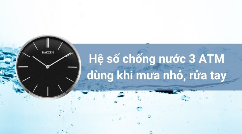 - Đồng hồ này có thể đeo khi đi mưa nhỏ và rửa tay nhờ vào hệ số chống nước là 3 ATM. Lưu ý không sử dụng đồng hồ khi đi bơi, lặn, đi tắm.