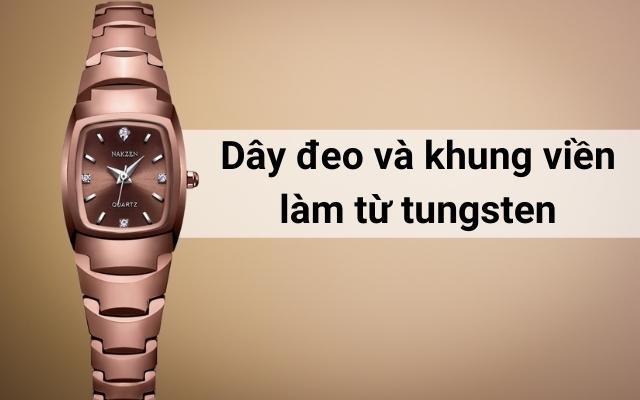 - Đồng hồ được trang bị khung viền và dây đeo đều làm bằng tungsten bền bỉ với thời gian, chịu được mọi thời tiết.