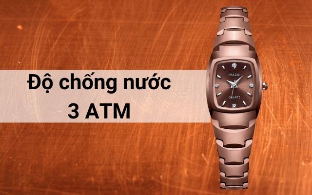- Mẫu đồng hồ nữ này có độ chống nước 3 ATM. Có thể mang khi rửa tay và đi dưới trời mưa nhỏ.