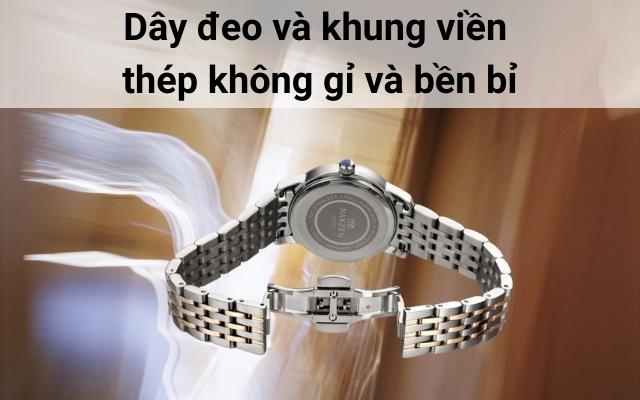 - Kết hợp dây đeo và khung viền thép càng tăng sự chi tiết tỉ mỉ trong thiết kế.