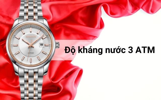 - Đồng hồ có khả năng kháng nước 3 ATM. Có thể đeo những lúc rửa tay hoặc đi dưới trời mưa. Lưu ý không sử dụng đồng hồ khi đi bơi, lặn, đi tắm.