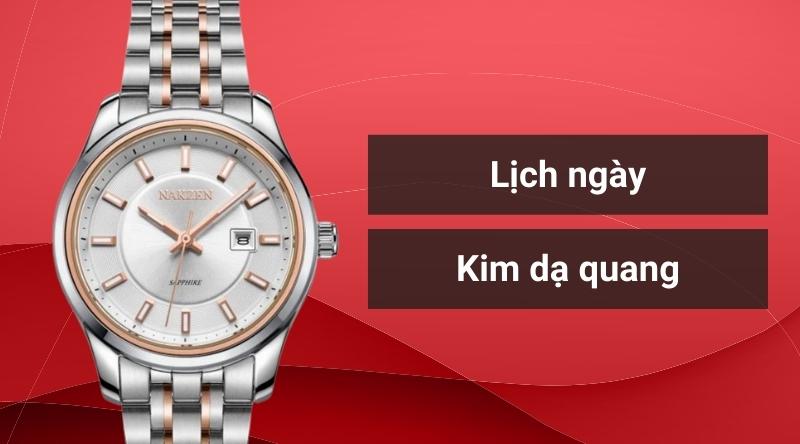 - Lịch ngày được tích hợp ngay trên mặt đồng hồ và kim dạ quang giúp người dùng thuận tiện theo dõi.