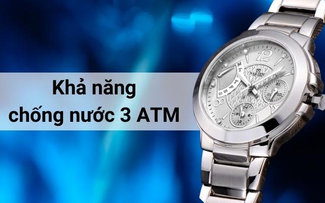 - Khả năng chống nước 3 ATM, thoải mái đeo khi rửa tay hay đi mưa. Lưu ý không sử dụng đồng hồ khi đi bơi, lặn, đi tắm.