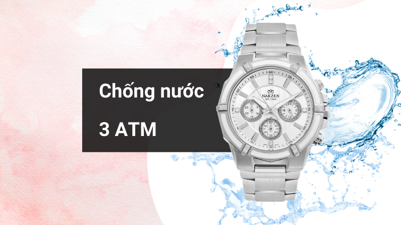 Thoải mái đeo chiếc đồng hồ Nakzen này khi rửa tay, đi dưới trời mưa nhỏ vì có hệ số chống nước là 3 ATM, không đeo khi tắm, bơi, lặn