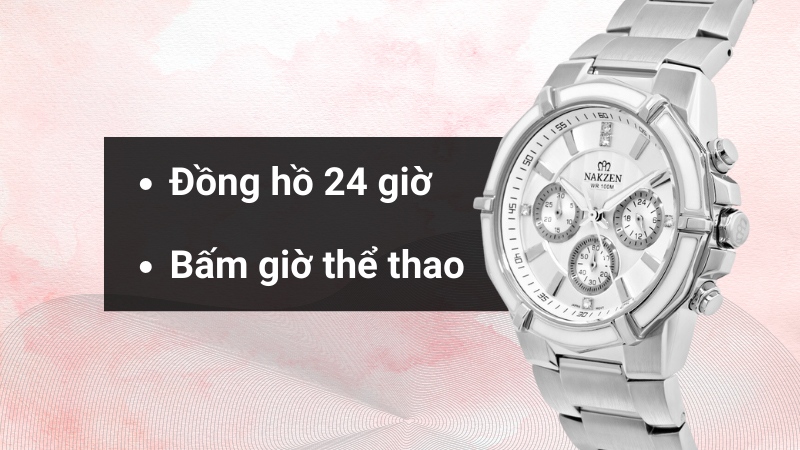 Chiếc đồng hồ Nakzen nam này trang bị mặt phụ 24h tiện lợi