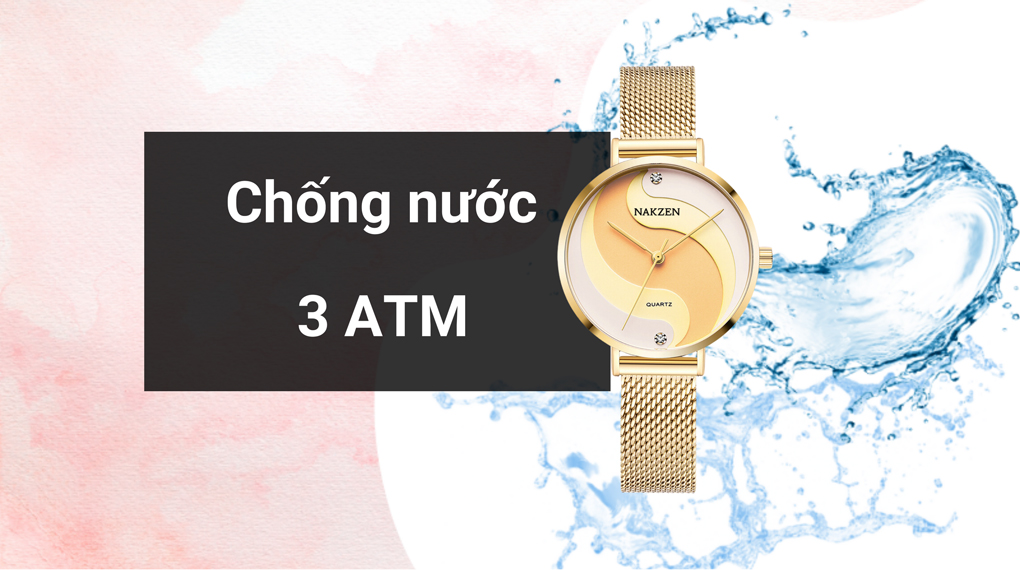 • Đồng hồ Nakzen này có hệ số chống nước lên đến 3 ATM, cho phép bạn sử dụng trong các hoạt động như rửa tay hoặc trong mưa nhỏ. Tuy nhiên, cần nhớ rằng không nên đeo khi tắm, bơi lội hay lặn xuống dưới nước.