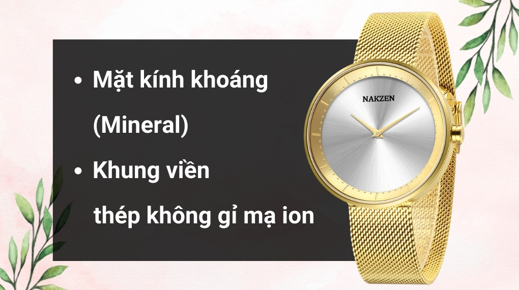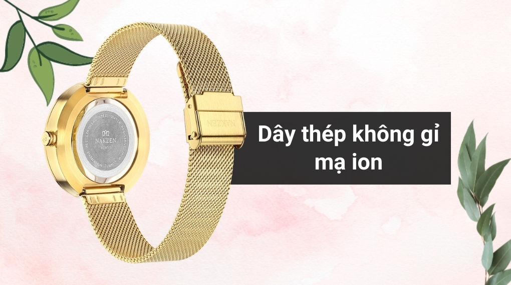 • Khung viền và dây đeo của đồng hồ Nakzen làm từ thép không gỉ mạ Ion không chỉ thêm phần sang trọng cho thiết kế mà còn bảo vệ sản phẩm khỏi sự ăn mòn do tác động môi trường.