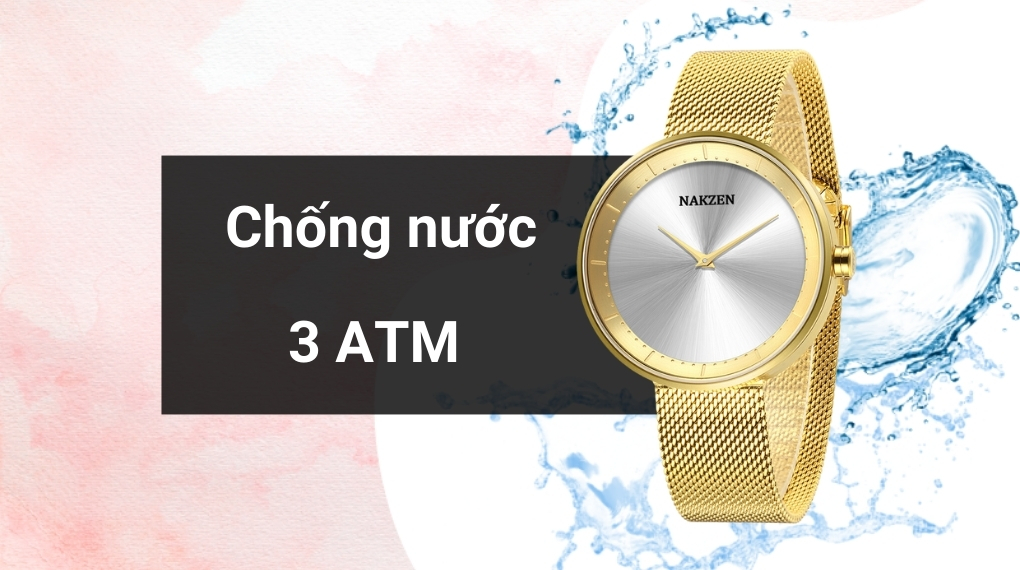 • Sản phẩm này đồng hồ nam có khả năng chống nước lên đến 3 ATM, phù hợp để sử dụng trong điều kiện ẩm ướt như rửa tay hoặc tiếp xúc với mưa nhỏ. Tuy nhiên, để bảo vệ sản phẩm, không nên sử dụng khi tắm, bơi lội hoặc lặn.