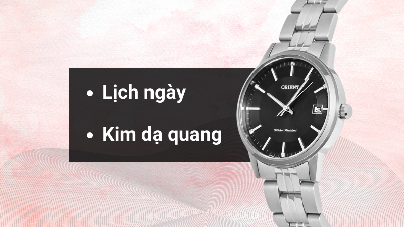 Đồng hồ trang bị kim dạ quang đẹp mắt, giúp bạn dễ dàng xem giờ ở những nơi có ánh sáng yếu.