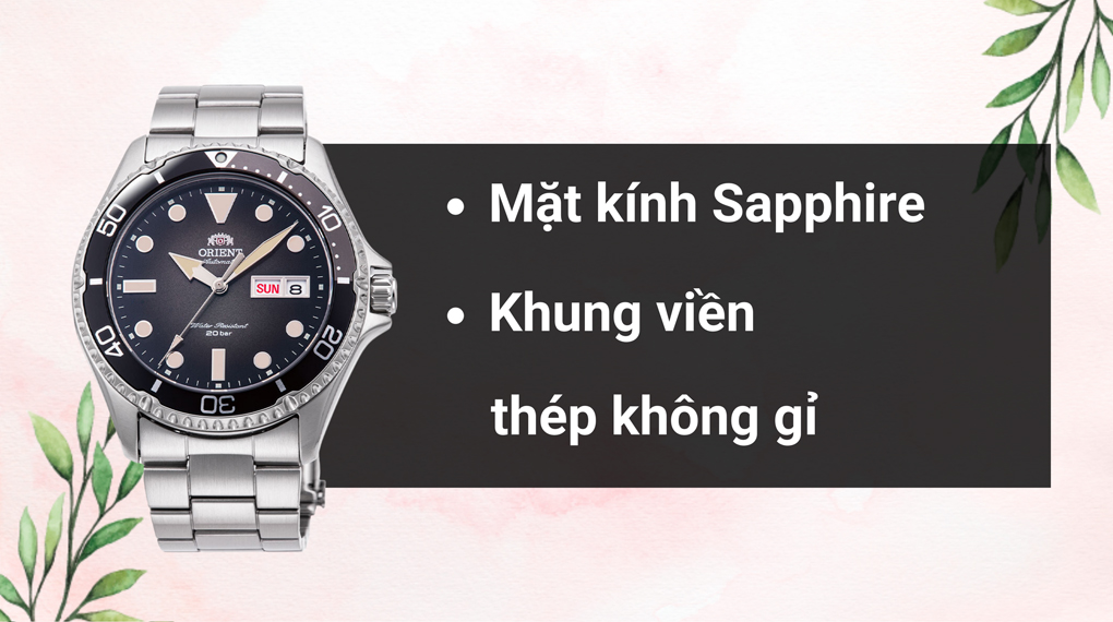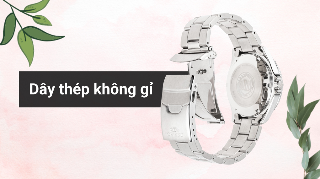 • Orient đã trang bị thép không gỉ cho phần dây đeo và khung viền, chất liệu này bền bỉ, hạn chế ăn mòn trước tác động từ môi trường vì vậy các bạn có thể yên tâm sử dụng lâu dài.