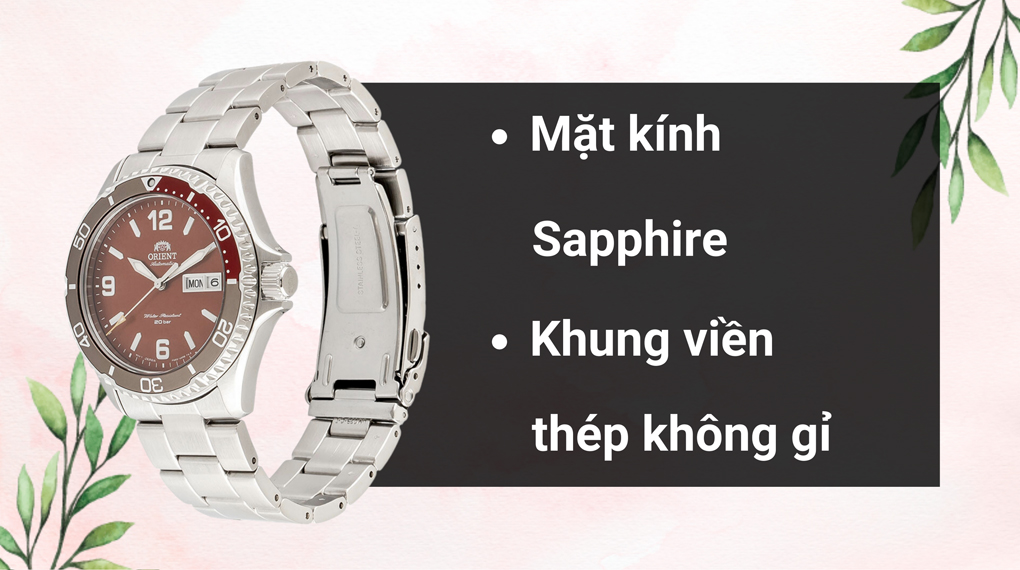 • Đồng hồ Orient có đường kính mặt lên đến 41.8 mm phù hợp với các bạn nam có cổ tay vừa. Ngoài ra, bạn không cần phải lo lắng về chất lượng mặt kính vì hãng đã lựa chọn kính Sapphire có khả năng chống trầy xước giúp cho những va đập thông thường không còn là vấn đề.