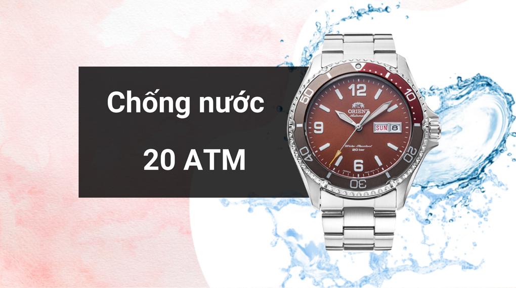 • Mẫu đồng hồ nam này có độ chống nước cao lên đến 20 ATM, với thông số này, người dùng có thể thoải mái đeo đồng hồ khi bơi, lặn hay những hoạt động thể thao khám phá dưới biển.