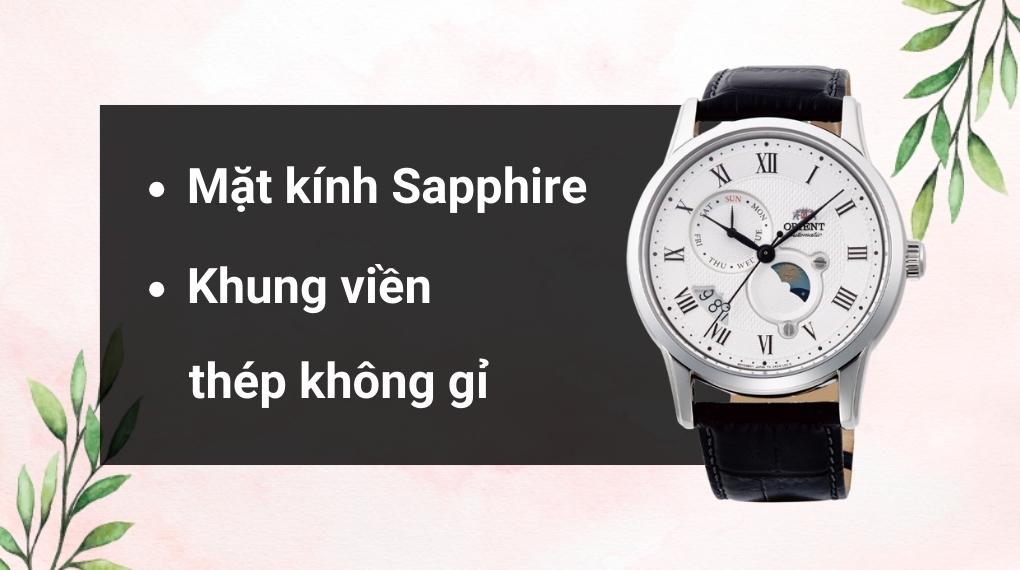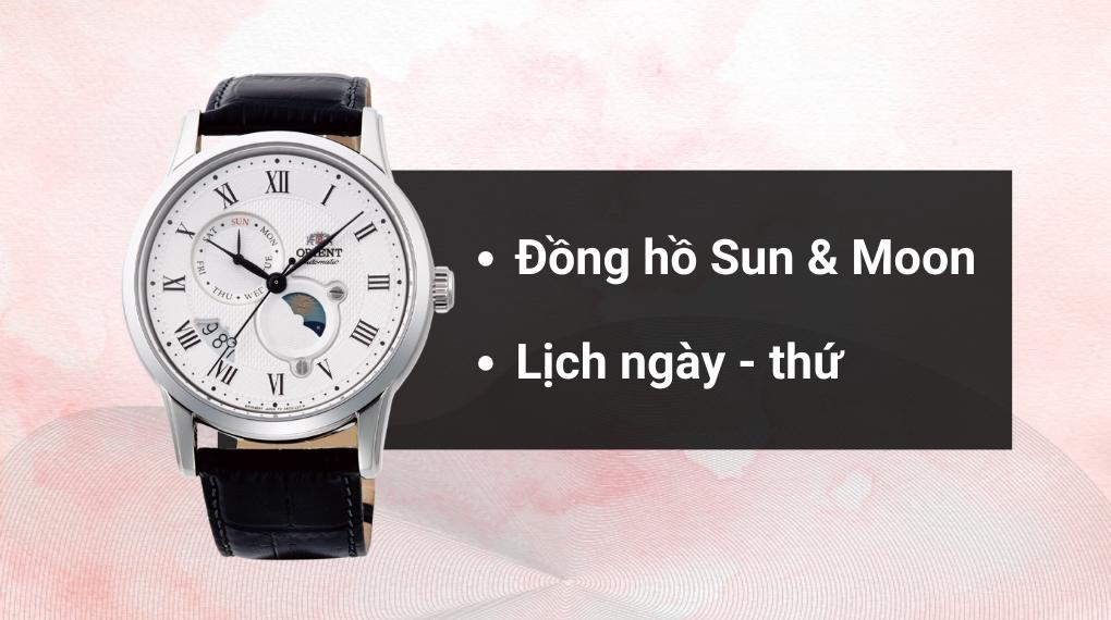 • Bên cạnh đó, chiếc đồng hồ Orient này còn được trang bị thêm các chức năng như lịch ngày - thứ, đồng hồ Sun & Moon với thiết kế sáng tạo, có phần khác biệt với các sản phẩm đồng hồ khác. Không chỉ làm tăng sự hoàn mỹ của sản phẩm mà còn giúp người dùng có thể theo dõi ngày, thứ và phân biệt sáng, tối hiệu quả hơn.