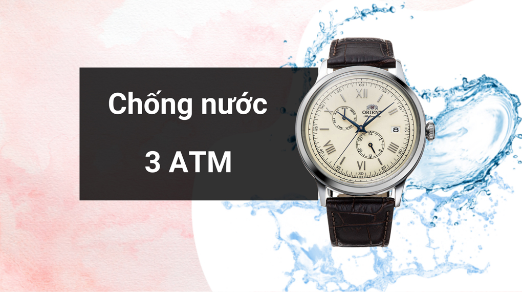 • Người dùng có thể yên tâm đeo mẫu đồng hồ Orient này trong các sinh hoạt hằng ngày như rửa tay, đi mưa nhỏ nhờ hệ số kháng nước lên đến 3 ATM. Lưu ý: không đeo khi đi tắm, bơi, lặn.