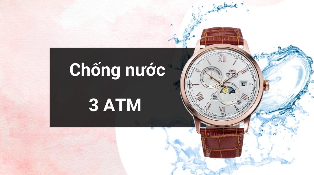 • Bạn có thể an tâm trang bị chiếc đồng hồ Orient này khi đi làm, đi dự tiệc hay trong các hoạt động thường ngày, bởi mức kháng nước của sản phẩm này là 3 ATM có thể mang theo khi rửa tay hay khi gặp phải những cơn mưa rào. Lưu ý: không nên mang theo khi tắm, bơi hoặc lặn.