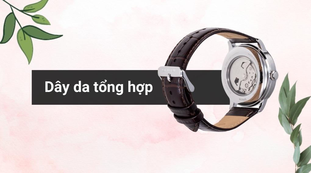 • Với chiếc dây vân cá sấu tối màu được làm từ chất liệu da tổng hợp, giúp người đeo có thể điều chỉnh kích cỡ và thoải mái khi sử dụng, kết hợp với phần khung viền đồng hồ được làm từ chất liệu thép không gỉ dễ bảo quản, hạn chế ăn mòn tốt và độ bóng bẩy cao, đã đem lại sự hài hòa cho tổng thể khi được kết hợp với nhau.