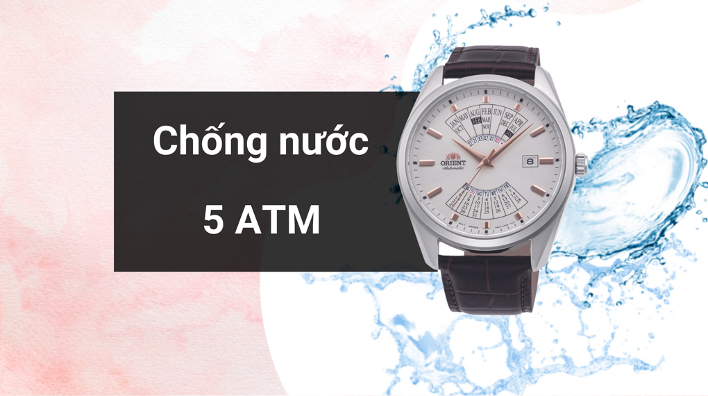 • Đồng hồ này cũng có tính năng chống nước lên đến 5 ATM, cho phép bạn yên tâm khi rửa tay, đi dưới mưa nhỏ hoặc thậm chí đi tắm mà không cần tháo ra. Tuy nhiên, lưu ý không nên đeo khi đi bơi.