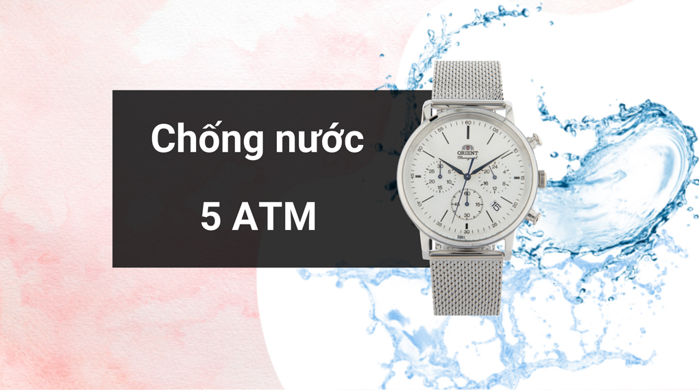 • Người dùng có thể yên tâm đeo mẫu đồng hồ nam này trong các sinh hoạt hằng ngày như rửa tay, đi tắm nhờ hệ số kháng nước lên đến 5 ATM. Lưu ý: không đeo khi đi bơi, lặn.