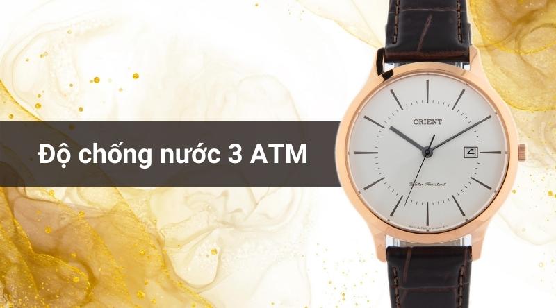 - Nhờ được trang bị hệ số chống nước 3 ATM nên bạn có thể dùng mẫu đồng hồ Orient này khi đi mưa nhỏ và rửa tay. Lưu ý không sử dụng khi đi tắm, đi bơi, lặn.