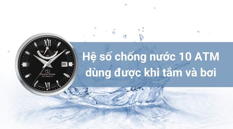 - Mẫu đồng hồ nam được trang bị hệ số chống nước 10 ATM, có thể dùng khi đi tắm và bơi.