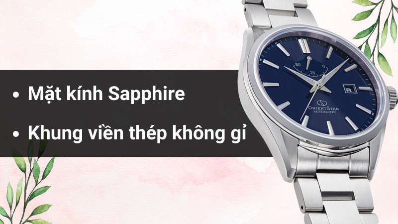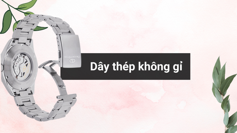 - Đồng hồ ORIENT Star 42 mm Nam RE-AU0403L00B có khung viền và dây đeo thép không gỉ bền bỉ, khó móp méo trước những va đập thường ngày