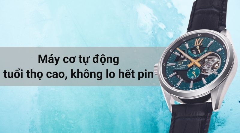 - Đồng hồ cơ tự động (máy Automatic) có tuổi thọ cao, không lo hết pin, không cần lên dây cót thường xuyên, thời gian trữ cót khoảng 50 tiếng.