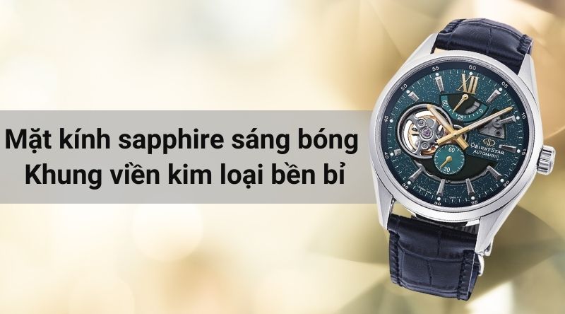 - Mặt kính sapphire cho độ sáng bóng cao, độ cứng cao, chịu lực tốt cùng với khả năng chống ăn mòn tuyệt đối. Dây làm bằng chất liệu da tổng hợp nên tạo cảm giác thoáng mát mát mẻ trong ngày dài, dễ lau chùi và độ bền cao. Khung viền làm bằng kim loại có độ bền cao, chống ăn mòn, sáng bóng.