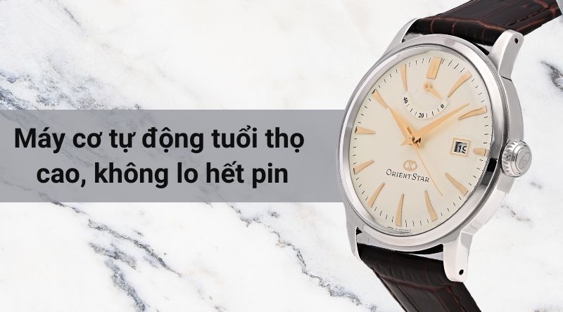 - Đồng hồ cơ tự động (máy Automatic) có tuổi thọ cao, không lo hết pin, không cần lên dây cót thường xuyên, thời gian trữ cót khoảng 40 tiếng.