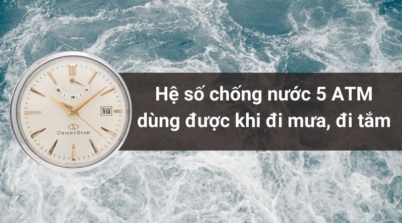 - Nhờ được trang bị hệ số chống nước 5 ATM nên bạn có thể dùng mẫu đồng hồ này dùng khi đi mưa và đi tắm.