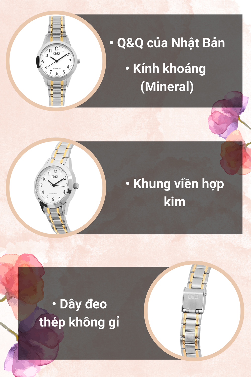 - Sau hơn 40 năm thành lập, đồng hồ Q&Q đã được người dân ở hơn 120 quốc gia mua và yêu thích.