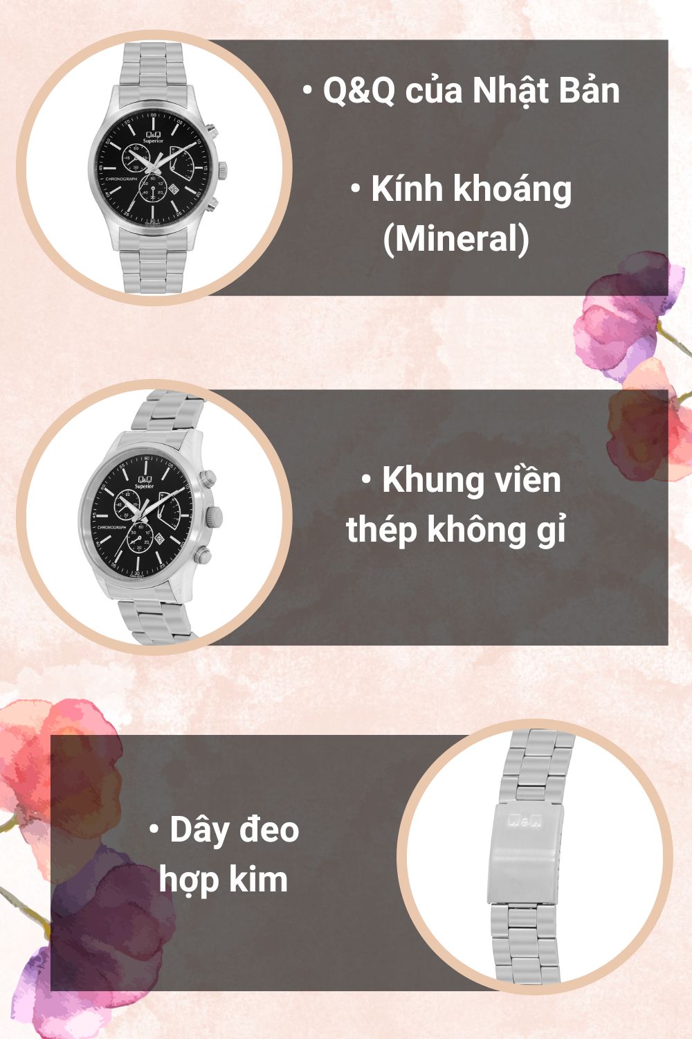 • Thương hiệu đồng hồ Q&Q nổi danh, có lịch sử lâu đời và danh tiếng khắp nơi đến từ xứ sở mặt trời mọc. Phong cách của hãng mang một nét cổ điển trong từng thiết kế, song vẫn toát lên vẻ hiện đại và tinh tế, hút ánh nhìn ngay từ lần đầu tiên.