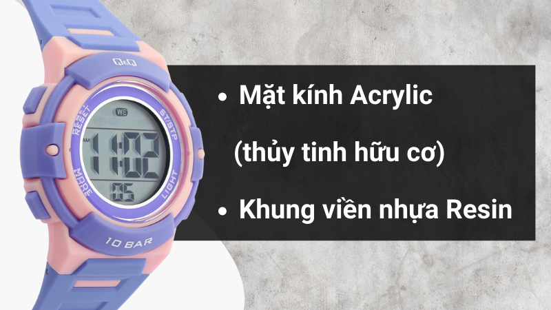 - Dây nhựa và khung viền nhựa Resin có độ bền cao, trọng lượng nhẹ, cho người dùng cảm giác dễ chịu suốt ngày dài