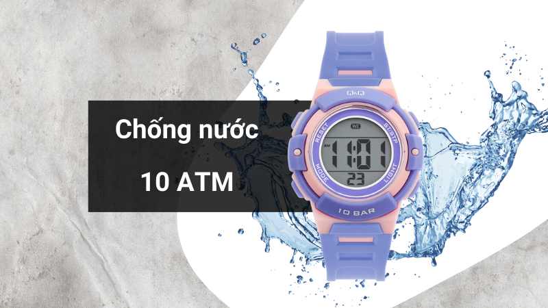 - Hệ số chống nước 10 ATM: Thoải mái đeo đồng hồ khi bơi, tắm mà không lo hư hỏng do vào nước, không mang khi lặn
