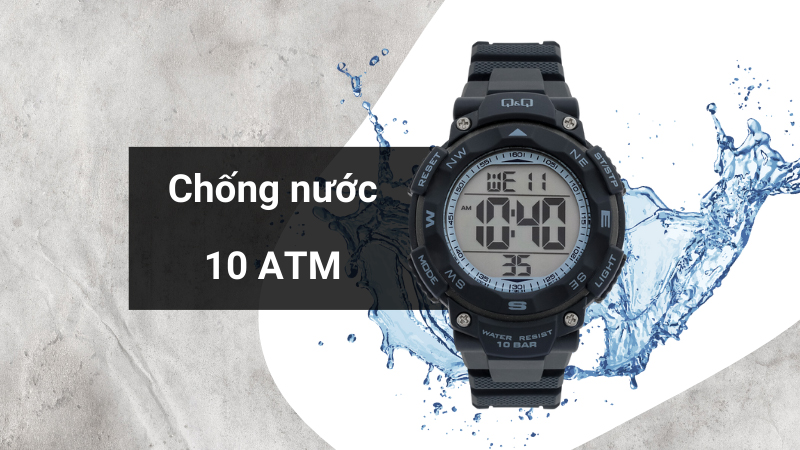 - Chống nước 10 ATM: Người dùng yên tâm đeo đồng hồ khi bơi, tắm mà không lo vào nước, không mang khi lặn
