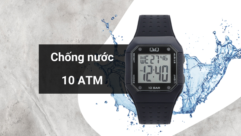 - Hệ số chống nước 10 ATM: Đồng hồ vẫn an toàn khi bạn đeo đi bơi, tắm, không nên mang khi lặn