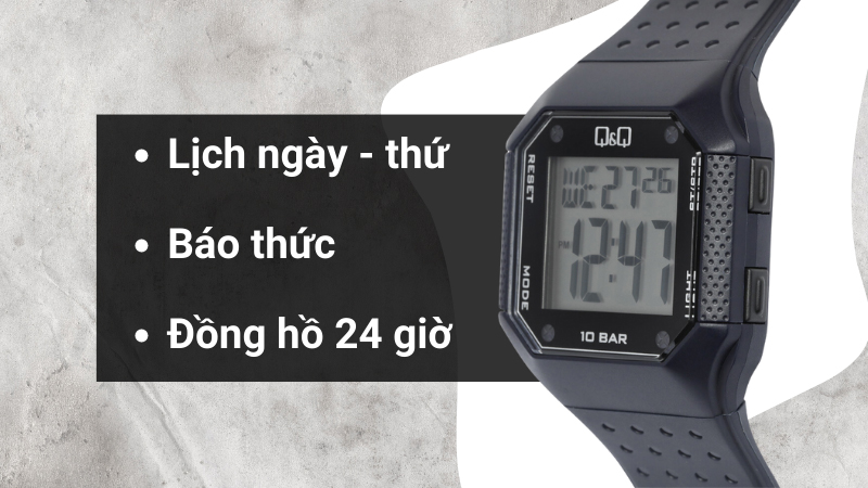 - Sở hữu nhiều chức năng hữu dụng như: Bấm giờ thể thao, bấm giờ đếm ngược, báo thức, đèn nền, lịch thứ, ngày, đồng hồ định dạng 24 giờ