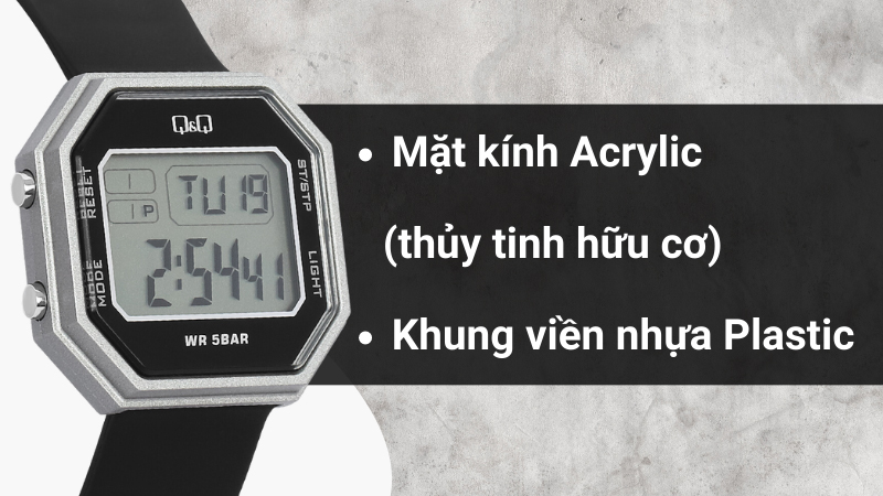 - Khung viền được chế tác từ nhựa plastic, bảo vệ an toàn cho các chi tiết bên trong đồng hồ. Dây đeo làm từ nhựa bền bỉ, thoải mái khi đeo.