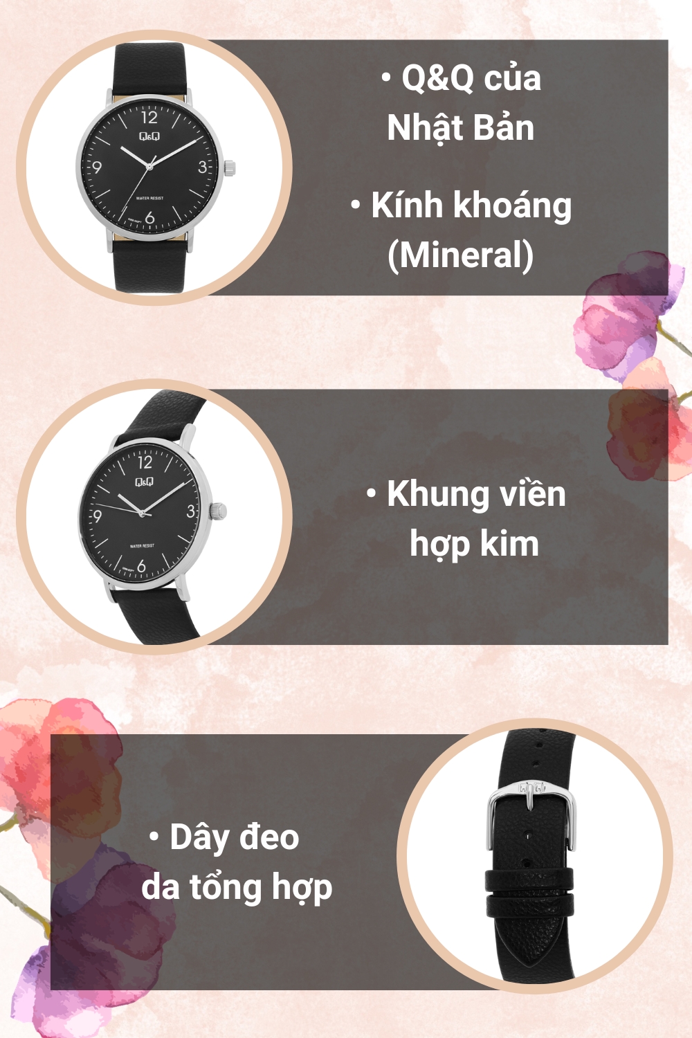• Đồng hồ Q&Q 40 mm Nam Q56B-002PY đến từ Nhật Bản là một sản phẩm tối giản và phù hợp với mọi phong cách của chàng trai.