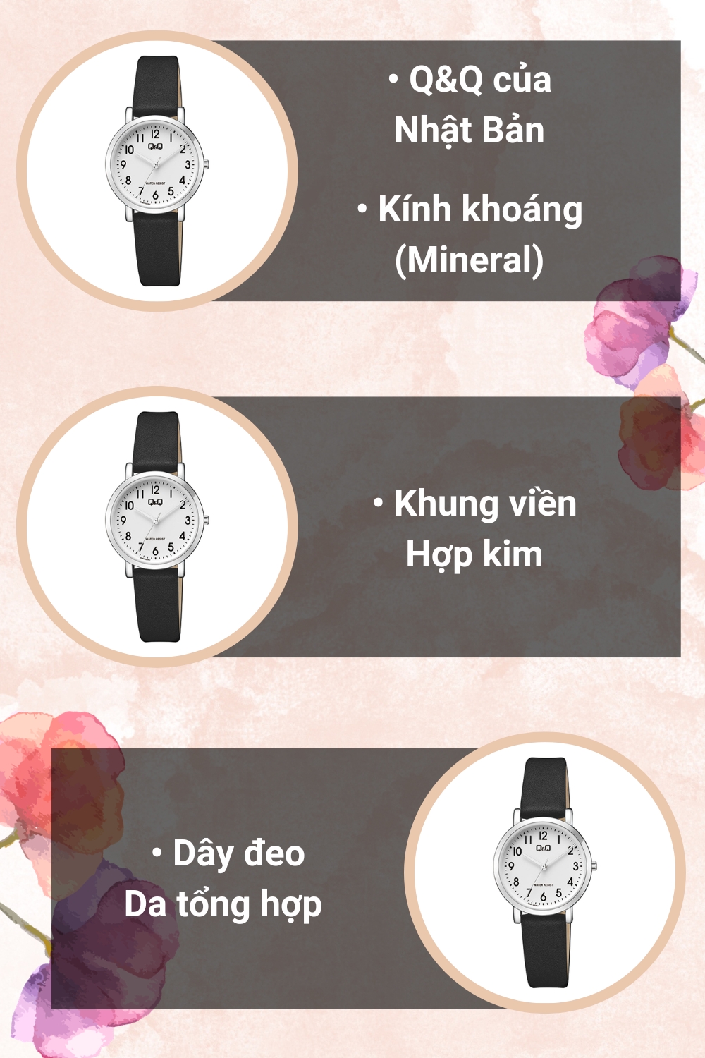 • Đồng hồ Q&Q 30 mm Nữ Q58A-007PY đến từ xứ sở hoa anh đào Nhật Bản, mang đến thiết kế tối giản và phù hợp với mọi phong cách của phái đẹp.